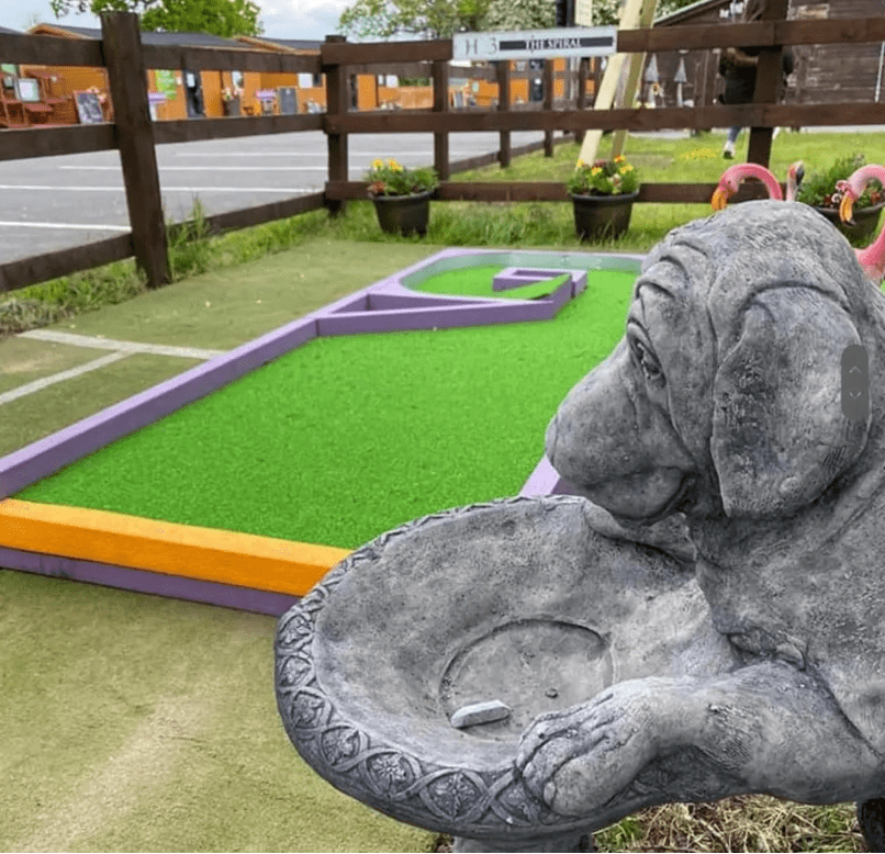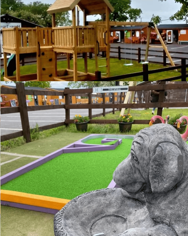 We have a purpose built bespoke crazy golf course onsite here at Hopley House as well as play equipment including, swings, slide, rock wall and climbing frame.